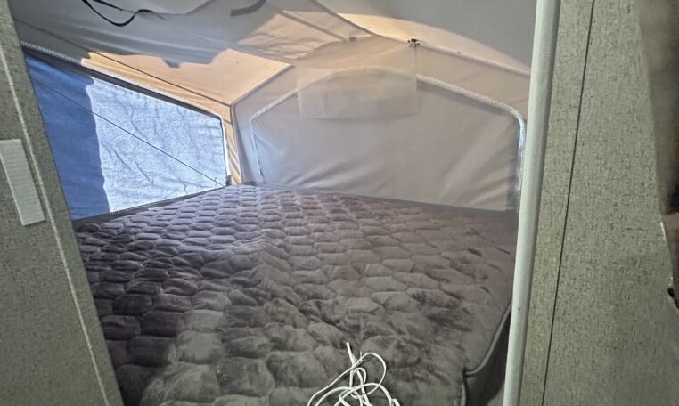 Two heated queen sized beds in front and back provide private sleeping arrangements..