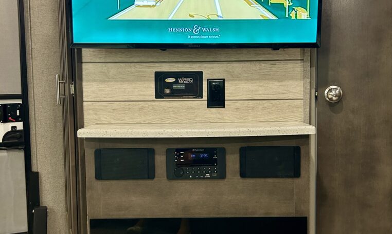 Entertainment system is equipped 40″ TV, AM/FM/Bluetooth radio and indoor/outdoor speakers.