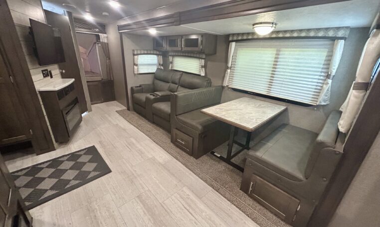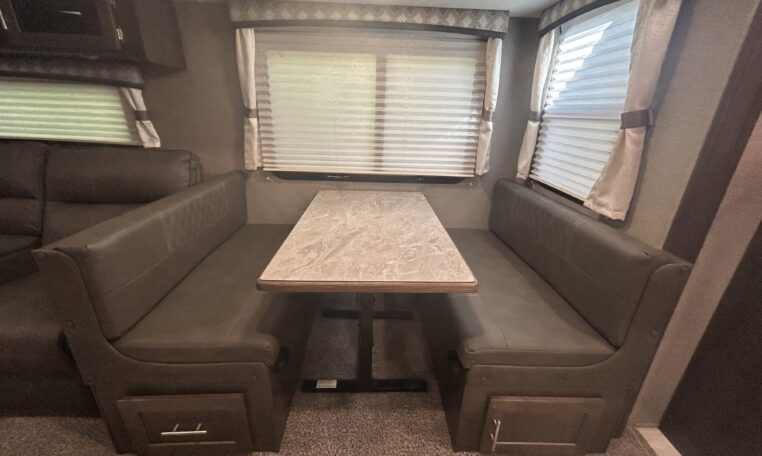 The roomy booth dinette can be converted into an additional bed for guests.