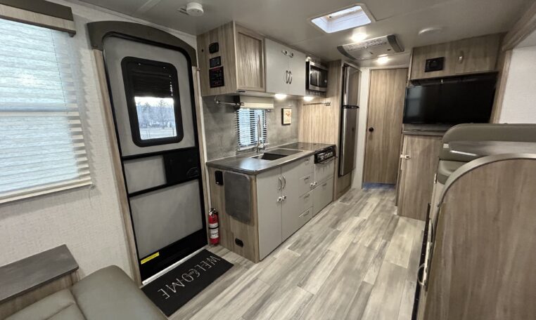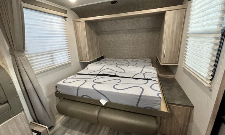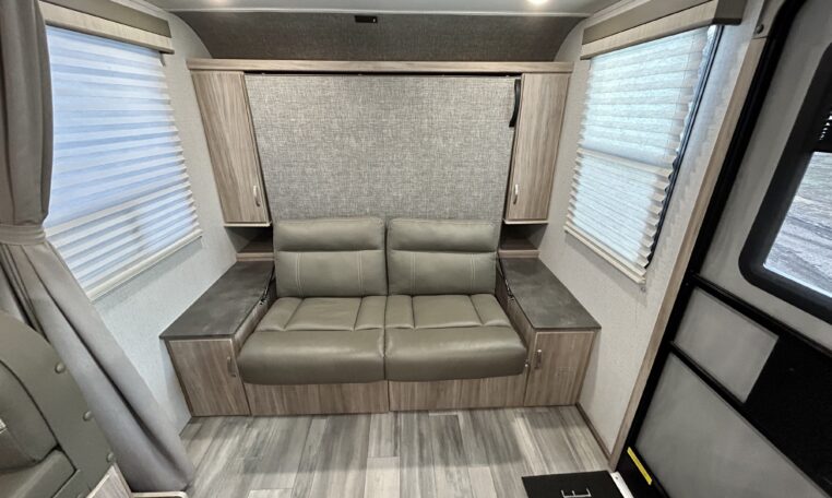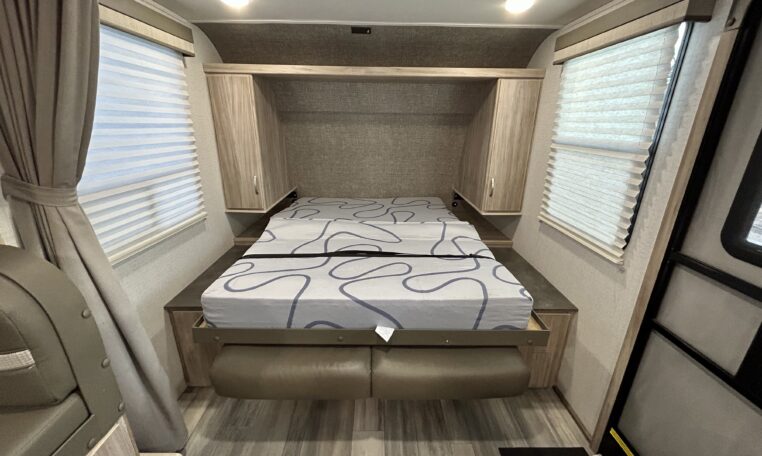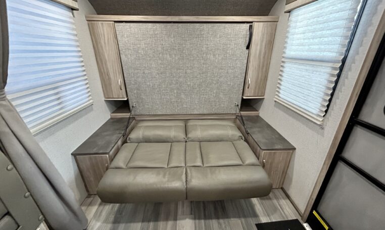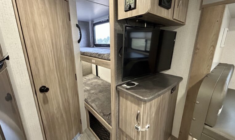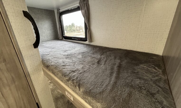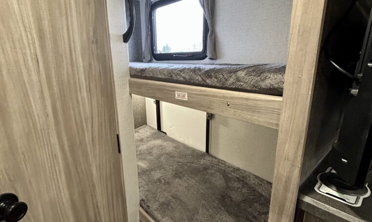 Great floorplan includes two single bunks in the rear of camper.