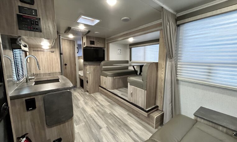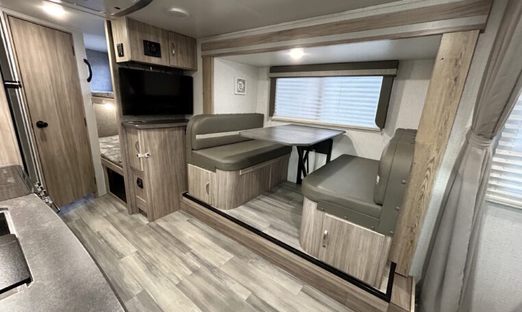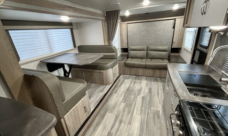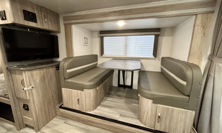 The XL booth dinette can be converted into an additional bed for guests if needed.